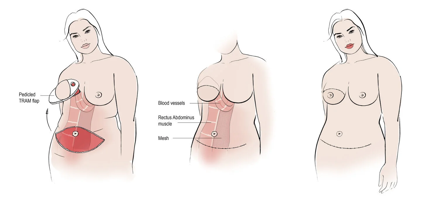 Secondary procedures after a TRAM flap reconstruction can be done in about 3 months. These procedures include breast revision surgery, creation of a nipple and areola, and scar revision on the abdomen. These surgeries are usually done as an outpatient.