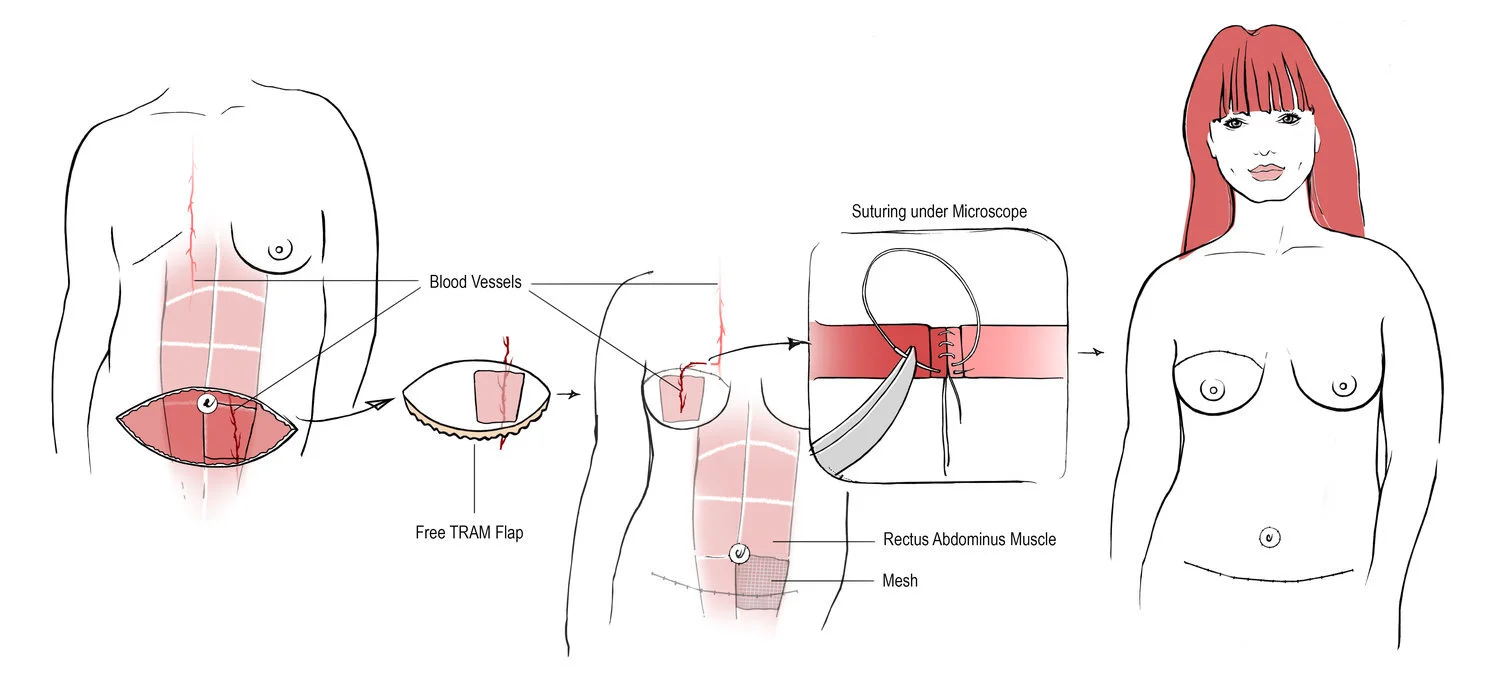 As opposed to the pedicled TRAM flap, this option is commonly combined with a breast implant to improve the aesthetic and shape of the reconstructed breast.